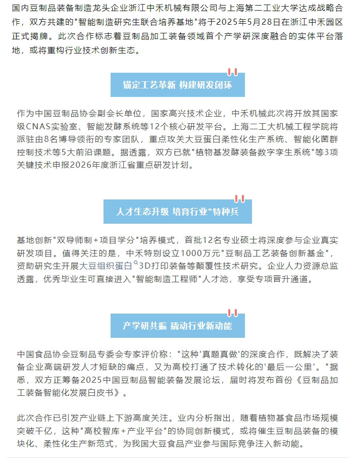 产教融合再添标杆!广东会机械联袂上海二工大打造豆制品装备研发新高地